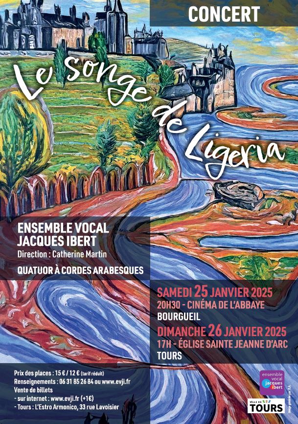 - Les 25 et 26 janvier 2025, le chœur a interprété en compagnie du quatuor à cordes Arabesques « Le songe de Ligeria », une œuvre du compositeur blésois Arnaud Juliot. Cet oratorio profane célèbre la Loire, à travers des poèmes de poètes français, de Joachim du Bellay à Charles Péguy, en passant notamment par Jean de la Fontaine et Charles Cros.